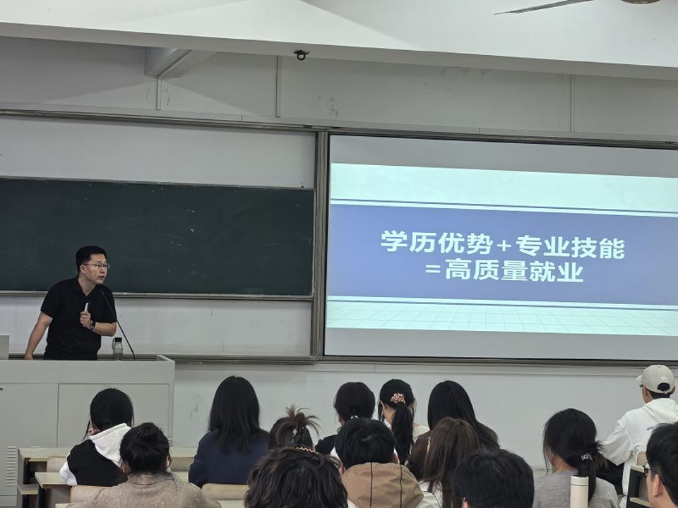 首先,徐庄软件园南京艾瑞公司项目经理、williamhill中文就业导师陈韩以“学历+技能=高质量就业”破题,通过详实数据解析就业形势。陈老师建议在校生善用寒暑假参与企业实习,同步提升专业技能与职场素养。