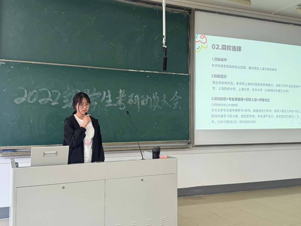 为了让同学们更加直观地了解考研情况,本次会议还邀请了2位2021级优秀考研学子进行经验分享。她们结合自身备考经历,从自我分析、复习方法和时间安排等方面展开分享。