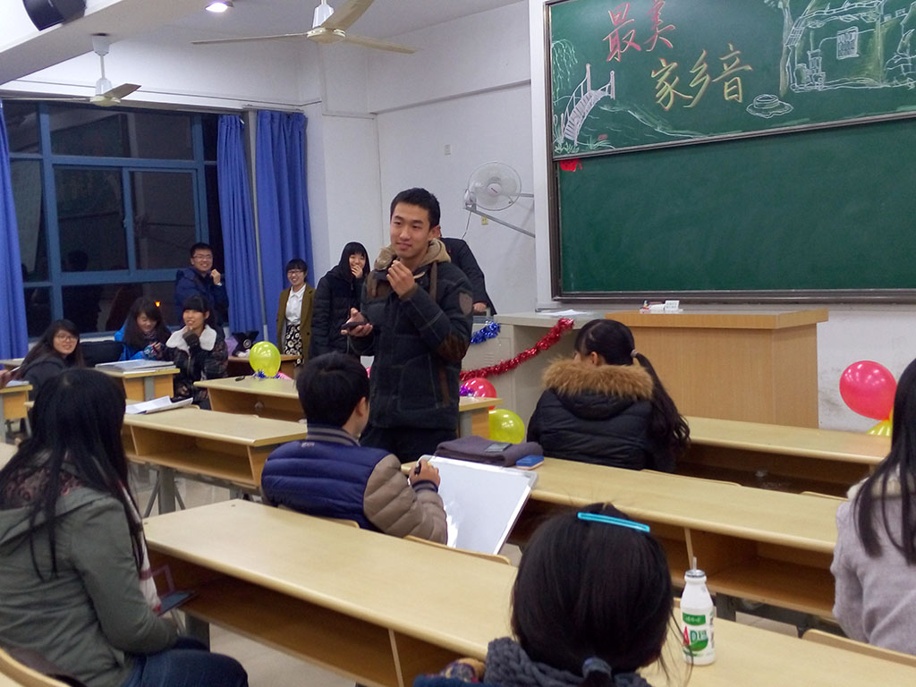 比赛于12月11日18:30在4-208正式开始,70多名选手报名参加比赛,经过紧张的预赛选拔25名选手进入决赛。决赛开场前同学们有说有笑,相互交流着自己家乡的方言,大家来自祖国各地却一点儿也不陌生尴尬,气氛十分融洽。