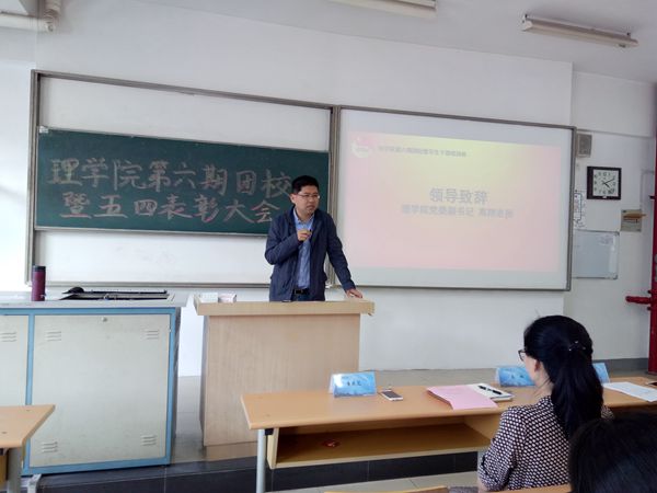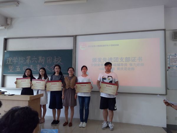 在颁奖仪式上,高翔老师、张力老师和黄庆花老师分别为获得“优秀团员标兵”、“先进团支部”、“五四红旗团支部”等荣誉的同学、团支部颁发奖状。