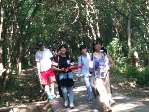 同学们到达紫金山脚下后,为了更好体现登山精神,大家一致同意选择比较陡的上山道,尽管登山变得更加艰难,但途中从未有人抱怨。相反,同学们个个精神抖擞、意气风发,朝着山顶奋力前进。登山的过程中,有个别同学因为身体原因掉了队,其他同学给她擦汗递水,相互鼓励,充分体现了同学的友谊和团队的凝聚力。虽然天气炎热,但同学们之间亲密的谈笑,相互的扶持,使整个爬山的过程充满了温馨和愉快的氛围。上午10点,全体学员都成功登顶,大家站在紫金山的山顶,俯瞰金陵,城市的风光尽收眼底,登上绝顶的自豪感油然而生。学员们纷纷在山顶拍照留念,在一片欢笑声中顺利结束了本次催人奋进的登山活动。
