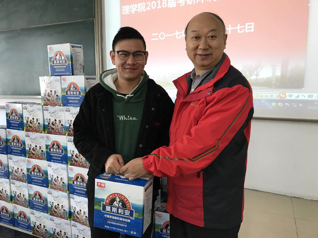 会上,李兴鳌经理作了动员讲话。首先,李经理对坚持考研的同学表示慰问,鼓励同学们务必坚持考完整个考试过程,坚决不能中途放弃。接着,就考研复习的过程,李经理给出了“结伴而行,相互鼓励”的建议。李经理希望同学们在考研的过程中一定要信息共享、资源共用,进而实现共赢的境界。最后,李经理强调了williamhill中文同学们有数学、物理基础较好的优势,他希望同学们好好利用这个优势,并通过自己的努力,创造出考研的好结果,进而打造我们williamhill中文的考研品牌,也为williamhill中文的人才培养等做出贡献。会后,李经理亲自为考研同学发放了爱心牛奶一箱。