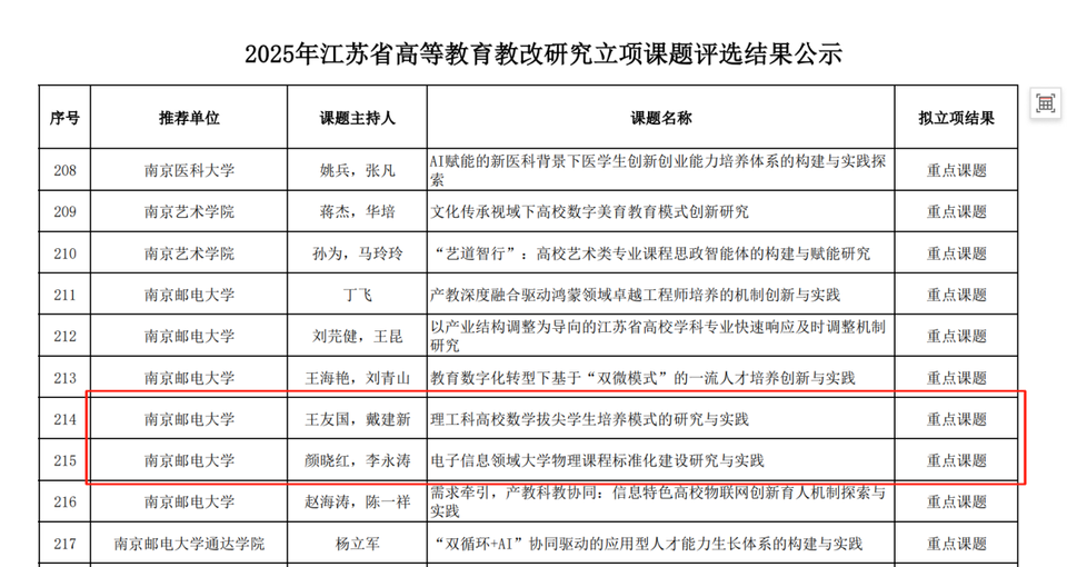 教师在江苏省高校微课教学比赛、数学基础课授课竞赛创新赛道中荣获一等奖2项,多位教师在省级赛事中表现突出,充分展现学院教师在教学理念、方法与课堂创新方面的综合实力,为一流团队建设与教学名师培育积累重要成果。